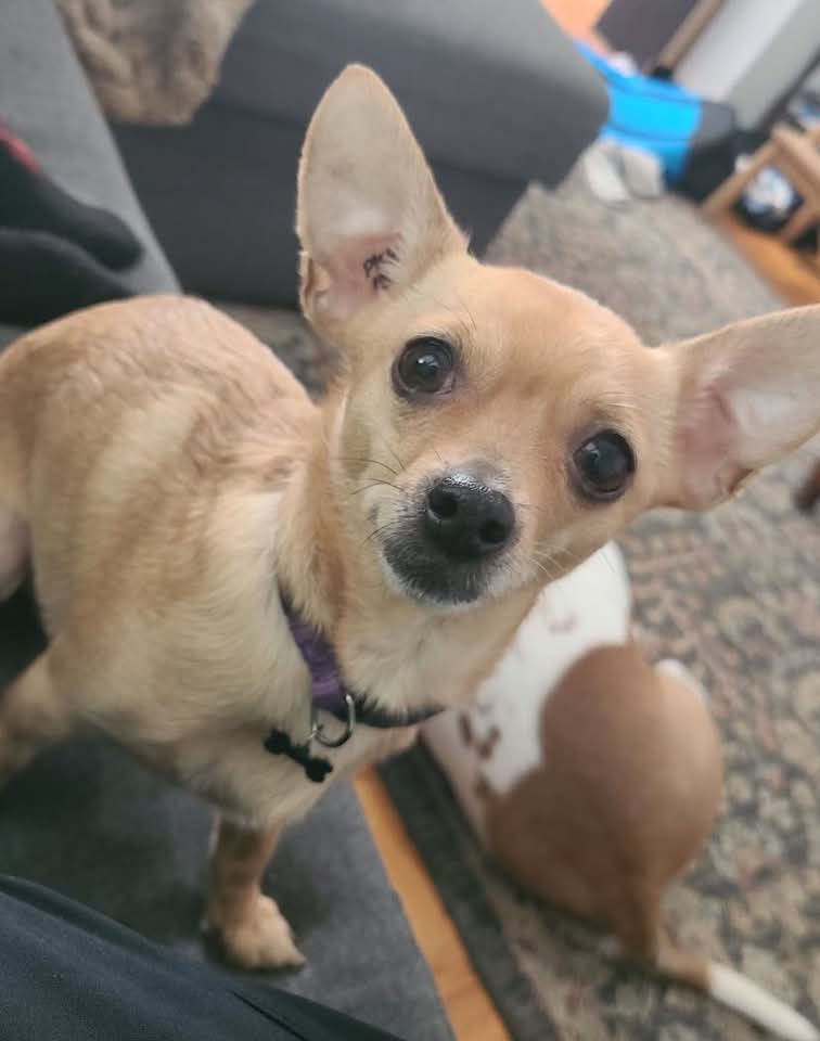 Good with kids: Yes! She loves kids, but due to her tiny size (~5 lbs), older dog-savvy children are best