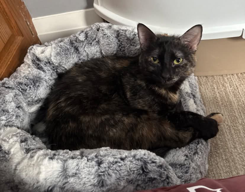 Minnie is a sweet, chatty girl who absolutely loves snuggling up in your lap. She’s a total purring machine and will happily keep you company while you relax — she’s the perfect binge-watching buddy!