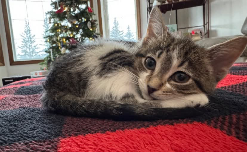 Purdy Princess would thrive in a slower-paced, cozy home with another cat or kitten to keep her company. She doesn’t like being alone and will softly call out if she loses sight of her people or siblings. A home with plenty of soft spots for lounging, patience, and lots of love would be perfect for this sweet girl.