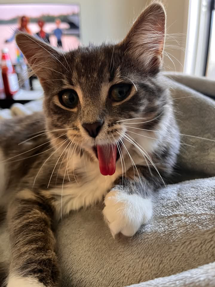 Good with cats: Yes! She’s playful and curious, so she should do well with other feline friends.